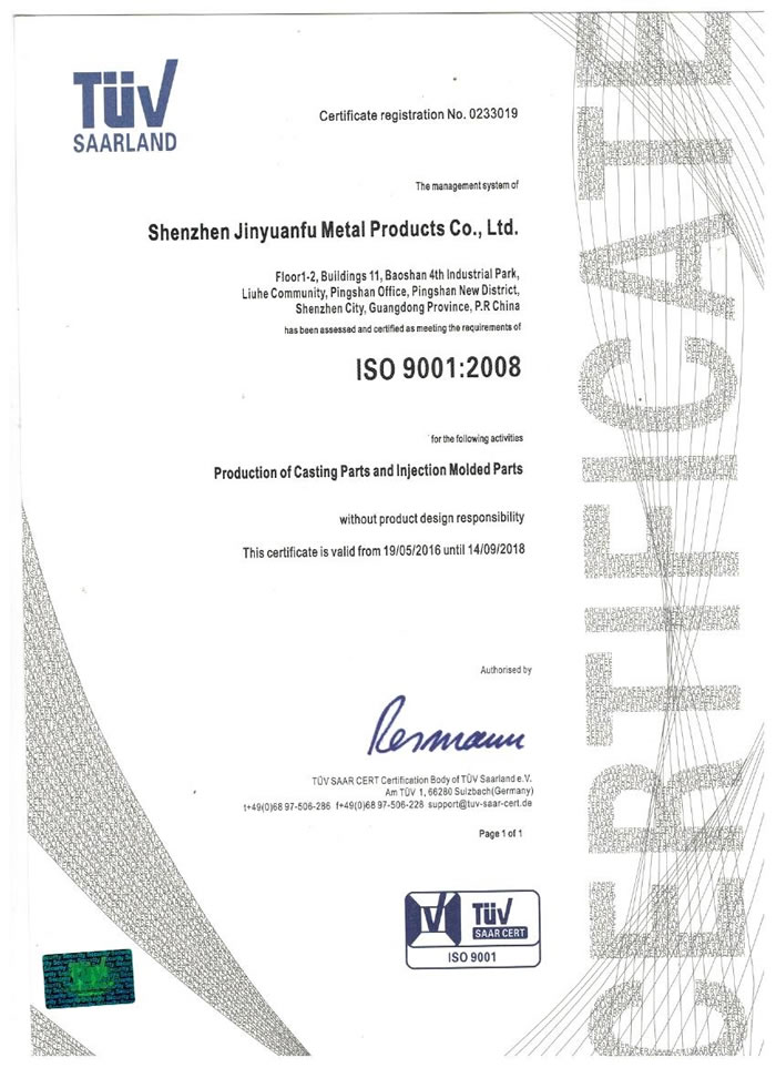 深圳市金源福五金制品有限公司成立于2003年。公司擁有8000多平方米生產(chǎn)廠地、開發(fā)與管理精英人才、技術(shù)專業(yè)、設(shè)備精良、交通便利、服務(wù)周全、具體設(shè)計(jì)、開發(fā)、制模、出樣、生產(chǎn)到成品出貨一體化模式生產(chǎn)廠家。已通過ISO9001:2008ISO1440/TS16949:2009國(guó)際質(zhì)量體系認(rèn)證。專業(yè)生產(chǎn)鋅合金壓鑄、鋁合金壓鑄產(chǎn)品、汽車配件、汽車后視鏡支架、車載導(dǎo)航散熱器、LED散熱器、LED燈罩、數(shù)碼電子五金結(jié)構(gòu)件、家具五金裝飾件、標(biāo)牌(LOGO)等五金壓鑄產(chǎn)品。
